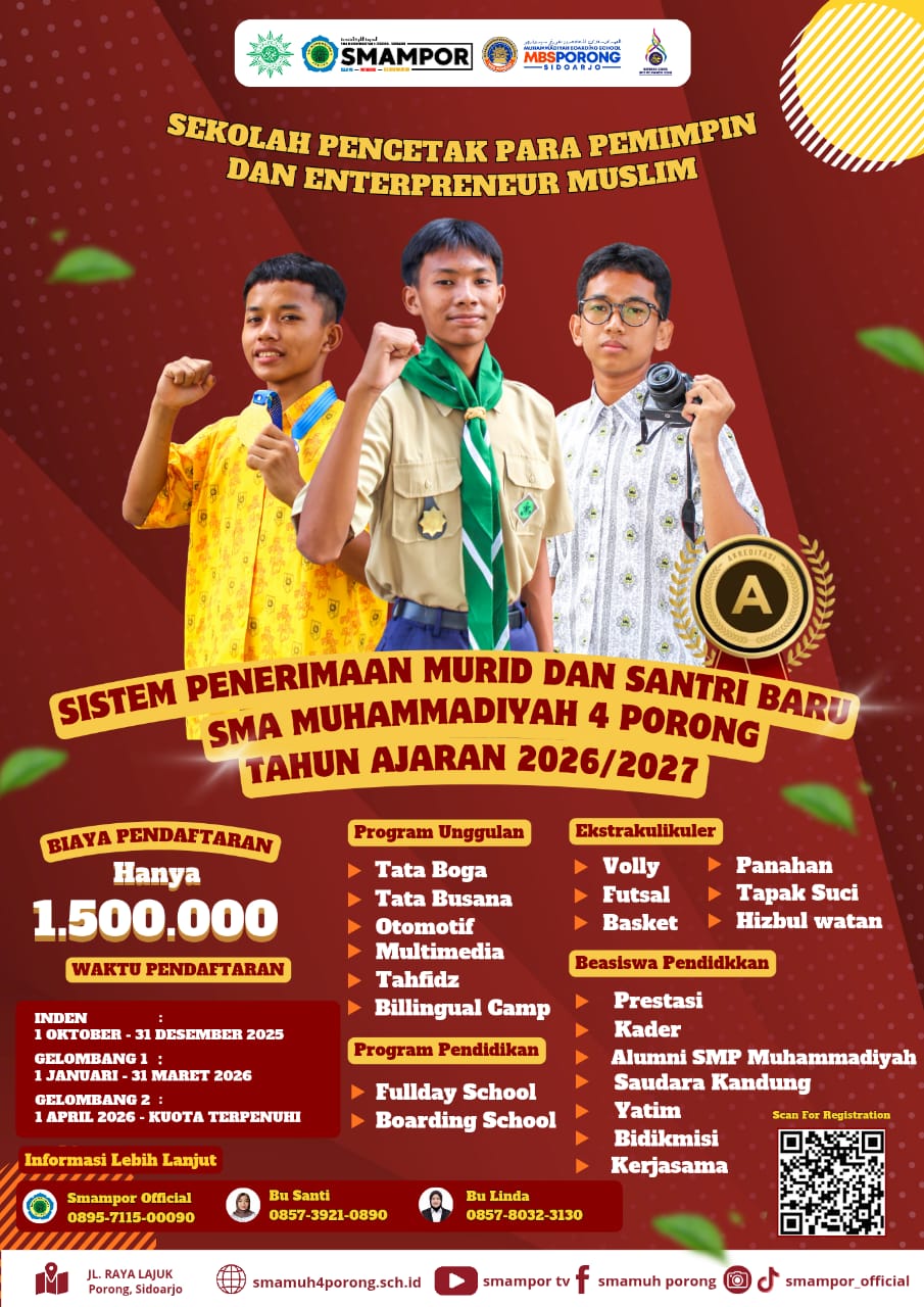 SMA Muhammadiyah 4 Porong Boarding School memiliki Visi, Terwujudnya peserta didik yang berkarakter islami, mandiri, dan berkemajuan. Visi tersebut menjawab dari kemajuan teknologi saat ini, sehingga lulusan dari SMA Muhammadiyah 4 Porong Boarding School bisa menyesuaikan diri terhadap perkembangan zaman.